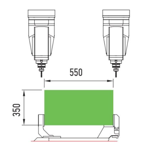 550 mm. x 350 mm. Procesamiento de perfiles desde la parte superior y posterior.