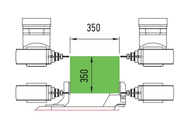 Eje Y: servomotores sin escobillas con engranajes que se mueven en piñón y cremallera helicoidal y guías lineales. V/máx: 60 mt./min.