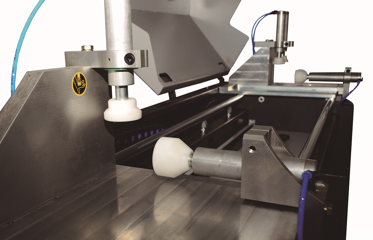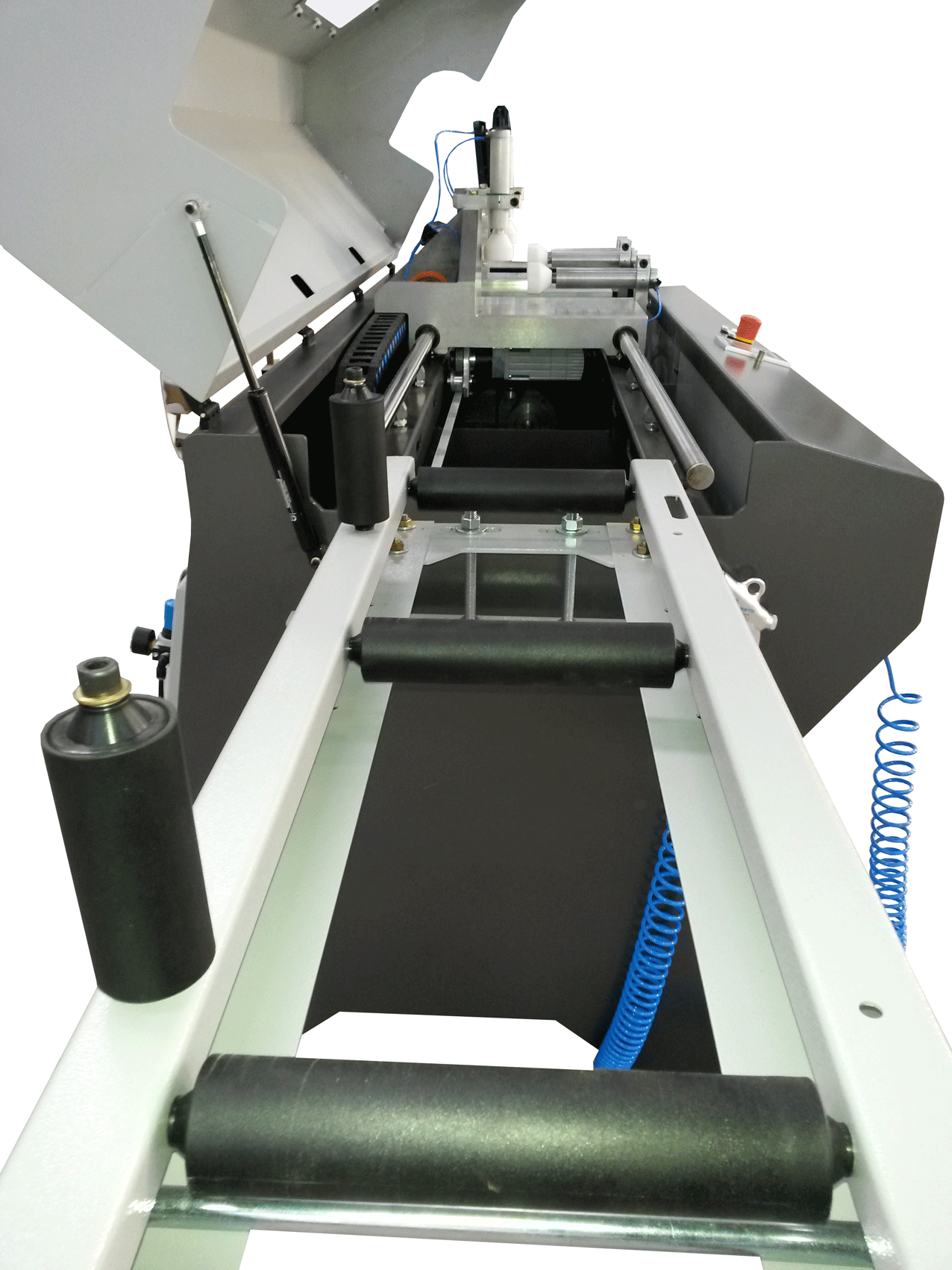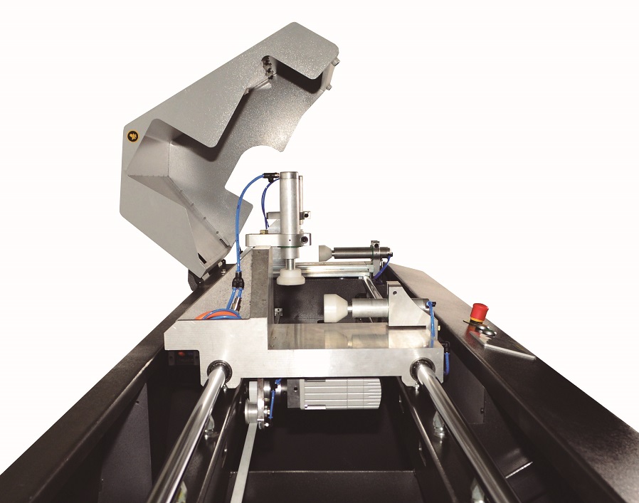 -       Protección zona de corte con tapa metálica y ventanillas de acrílico para inspección.