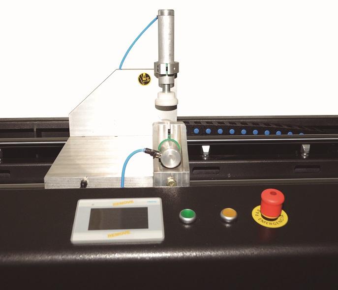 -       Corte con cabezal ascendente de avance automático, accionado por cilindro eléctrico controlado por servomotor, lo que permite control de alta precisión en cuanto a velocidad de avance , cantidad de avance (alto de corte ) y fuerza de avance .
